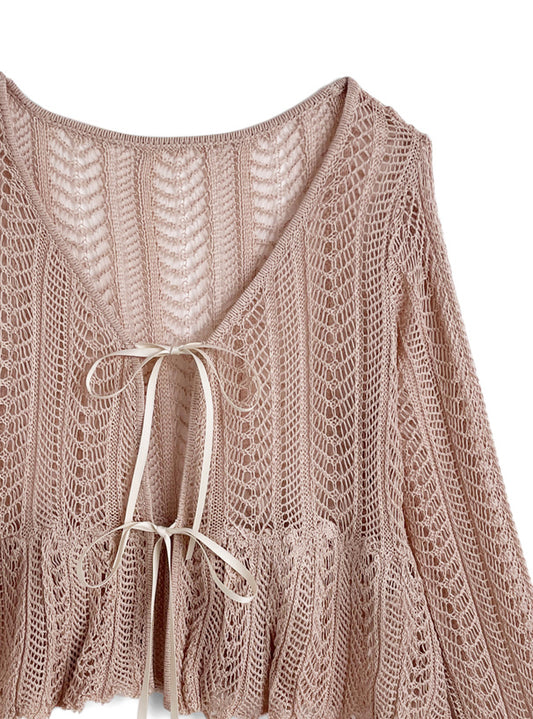 日本直送 [預購] 蝴蝶綁帶౨ৎ鏤空針織外套 ◍ 3色入