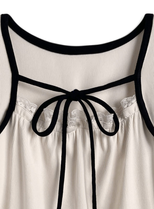 日本直送 [預購 - 日本4月上旬發貨] 一套2件setup ⇉ 側抽繩౨ৎ露肩針織上衣➕蕾絲背心 ◍ 4色入