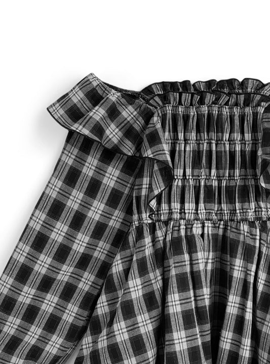 日本直送 [預購] 格仔Ruffle邊露肩連身裙 (黑 ブラック)