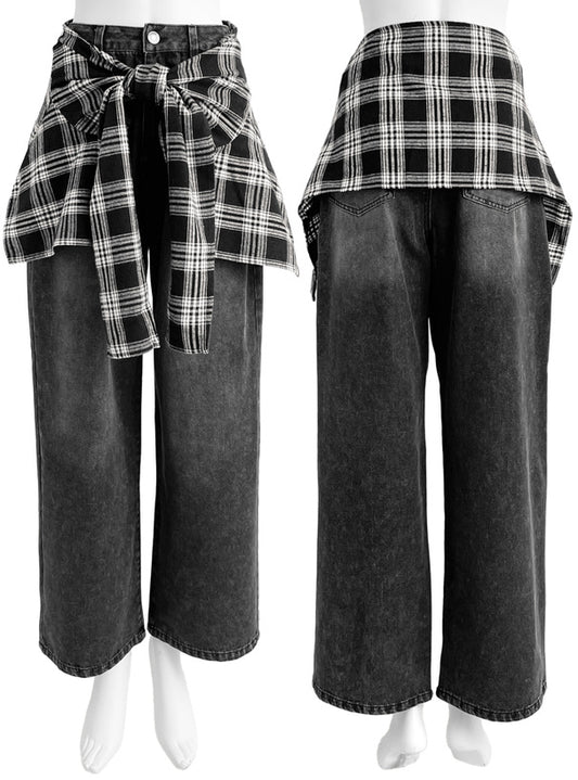 日本直送 [預購] 格仔恤布·拼接牛仔褲 (黑色 ブラック)