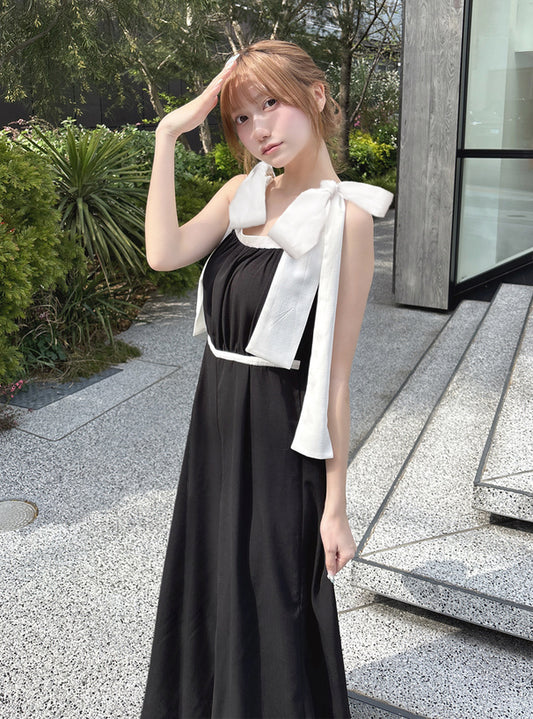 日本直送 [現貨] 黑白拼色 ౨ৎ蝴蝶肩帶連身褲 (黑 ブラック)