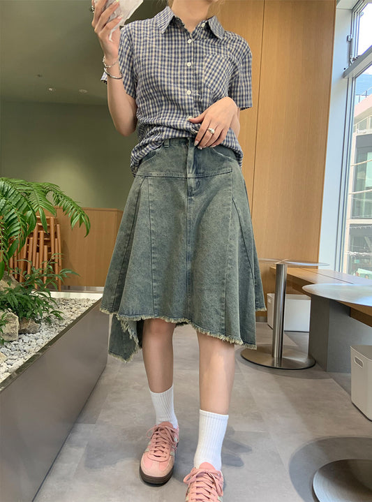 日本直送 [預購] 不規則·流穌邊·洗水色牛仔裙 (藍 ブルー)