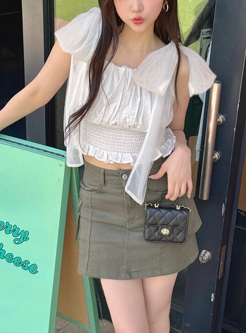 日本直送 [預購] 木耳邊·帶蝴蝶結౨ৎ背心 ◍ 2色入