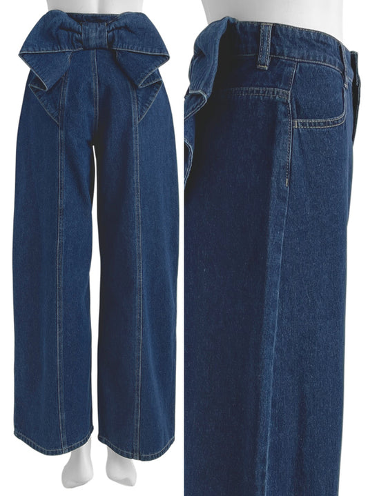 日本直送 [預購] 側蝴蝶結౨ৎ洗水色 牛仔裙褲 (Blue ブルー)