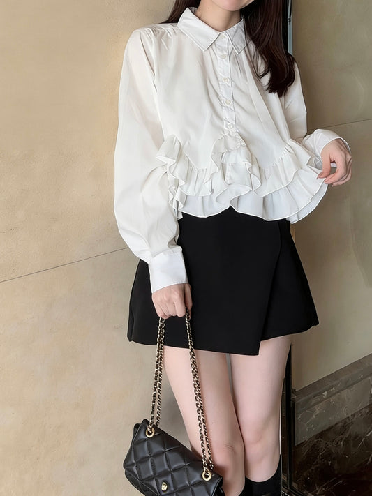 日本直送 [預購] 20%棉☁️ 下擺Ruffle恤衫 ◍ 4色入