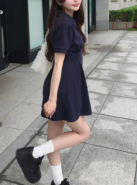 日本直送 [預購] Polo領口·修腰Aline連身裙 ◍ 2色入