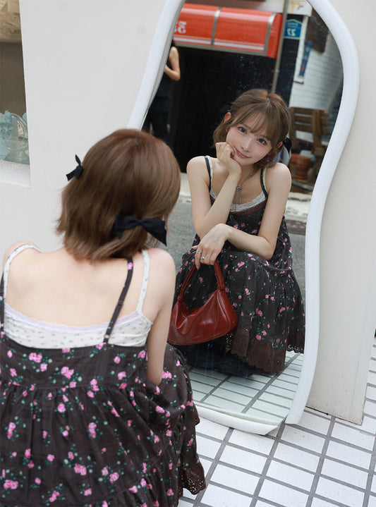 日本直送 [預購] 碎花拼接蕾絲·Ruffle吊帶裙 ◍ 3色入