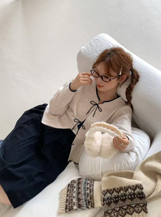 日本直送 [預購] 一套2件setup ⇉ 針織綁帶౨ৎ外套➕背心 ◍ 4色入