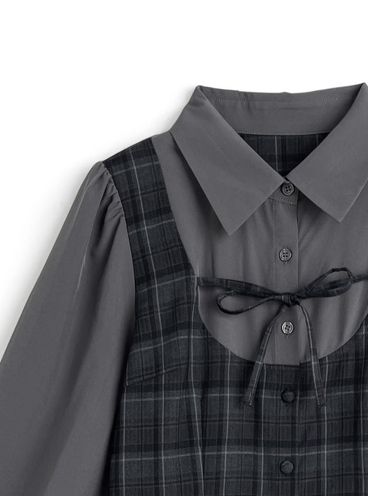 日本直送 [預購] 扮2件·格仔恤領拼針織毛衣 ◍ 3色入