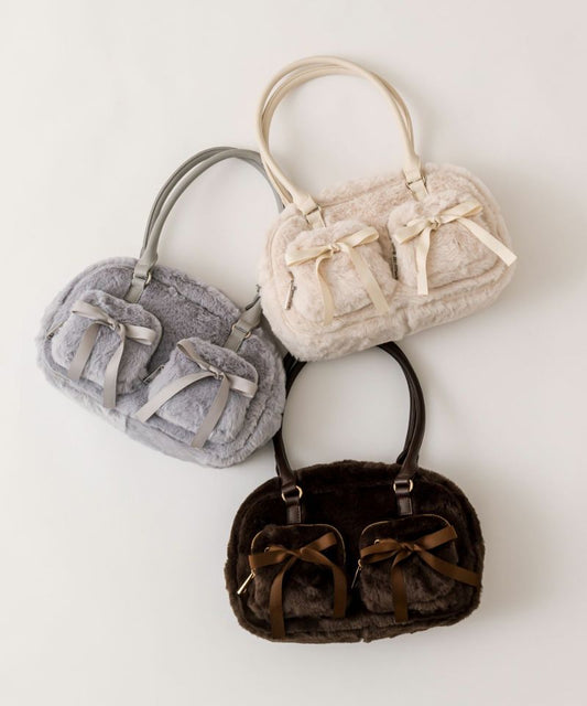 日本直送 [預購] 蝴蝶結౨ৎ 毛皮波士頓袋 ◍ 3色入