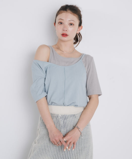 日本直送 [預購] 扮2件·拼接露肩上衣 ◍ 2色入