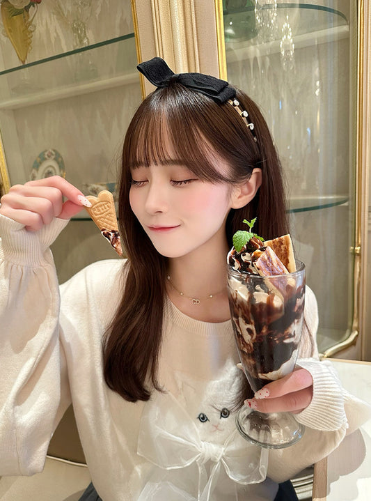 日本直送 [預購] 毛絨貓貓拼接大蝴蝶結౨ৎ針織毛衣 ◍ 5色入
