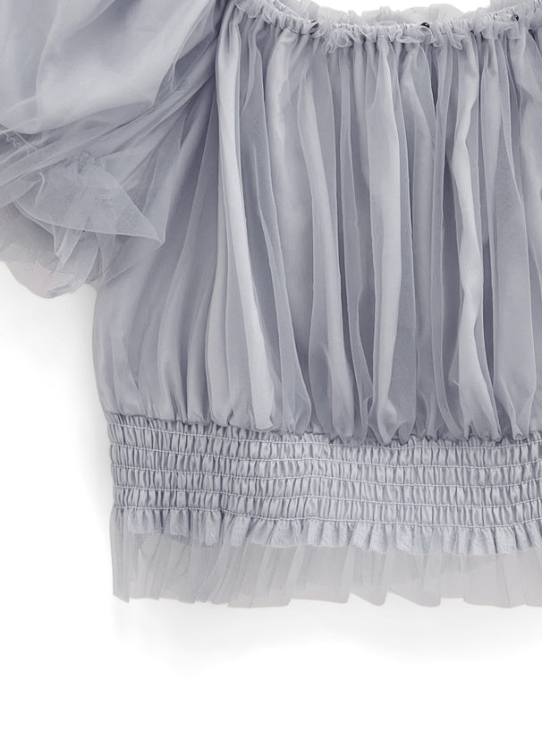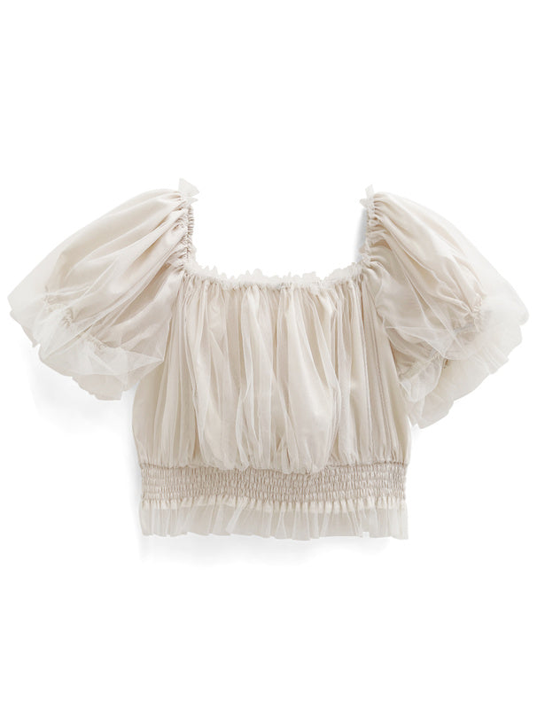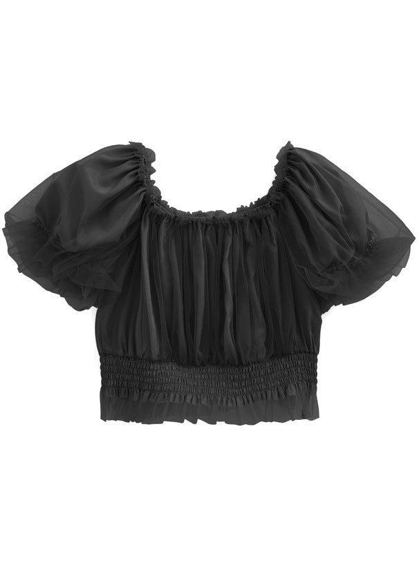日本直送 [預購] 泡泡袖·方領紗紗上衣 ◍ 4色入