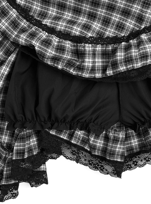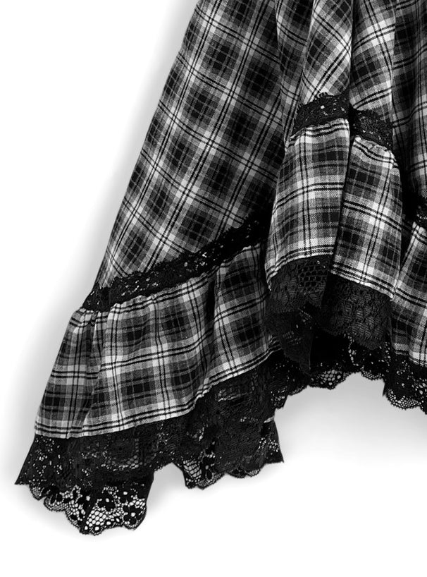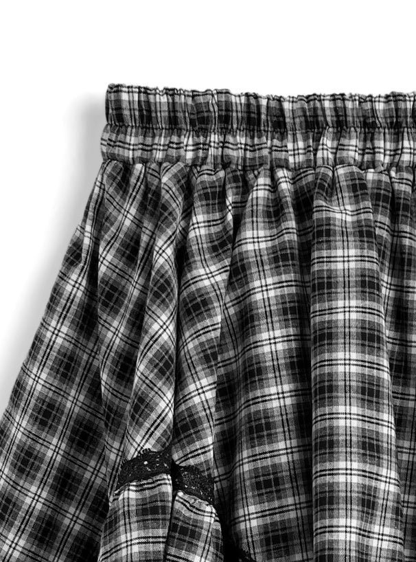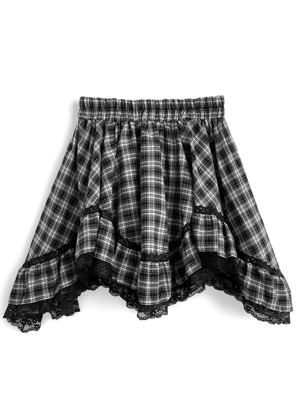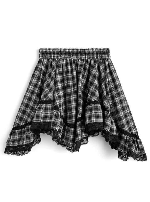 日本直送 [預購] 不規則蕾絲下擺·格仔短裙 (黑 ブラック)
