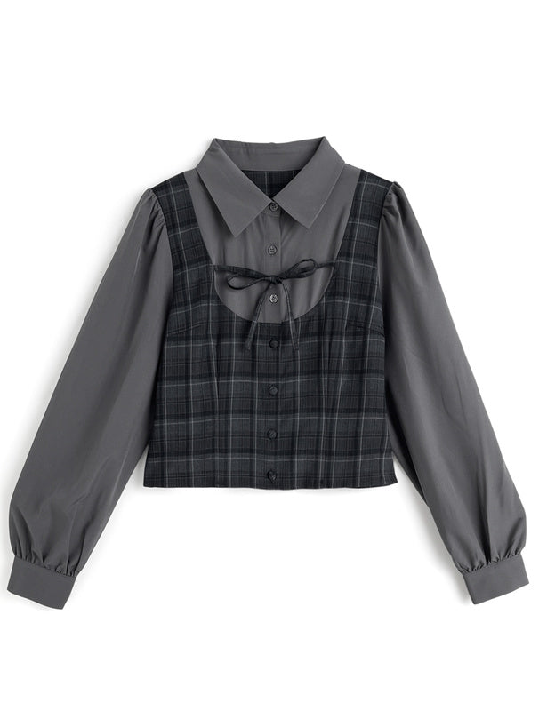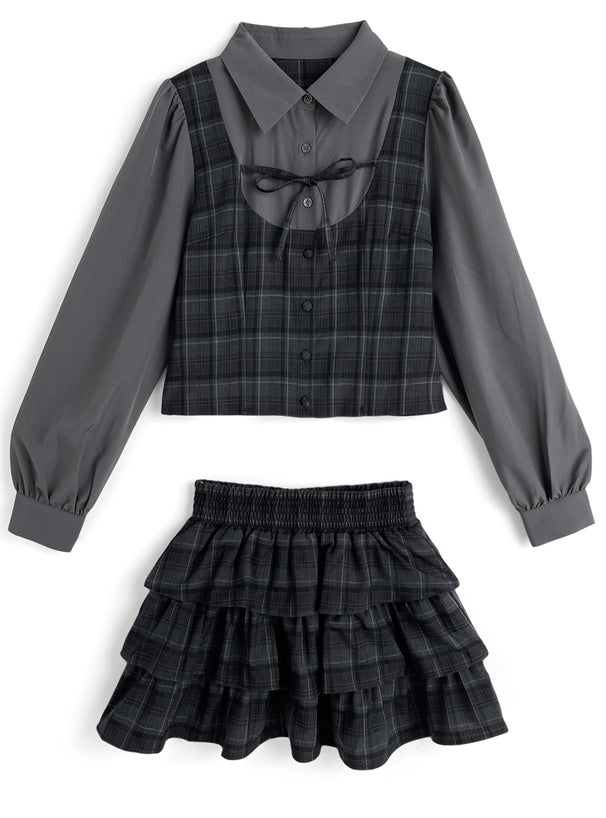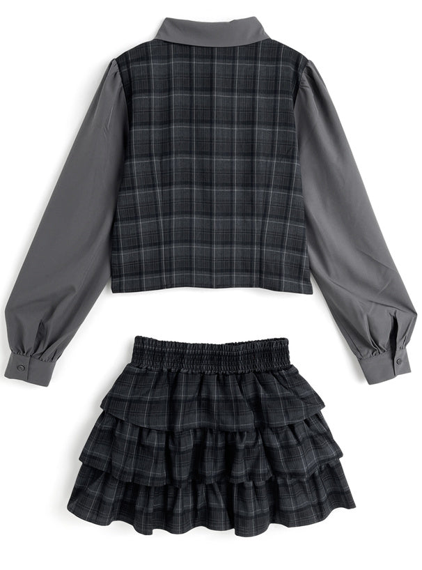 日本直送 [預購] 一套2件setup ⇉ 格仔拼接恤衫➕蛋糕短裙