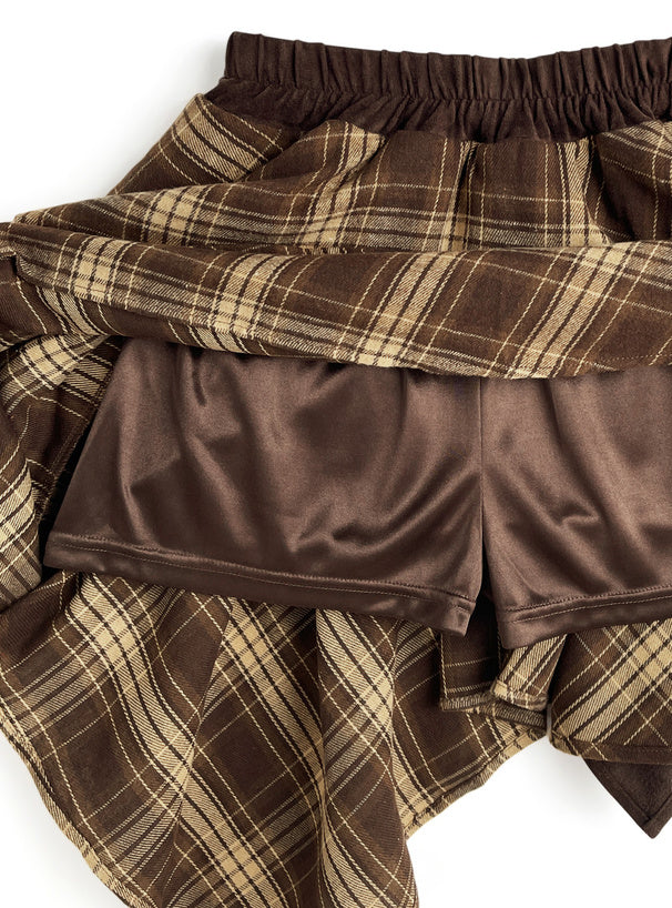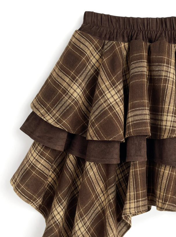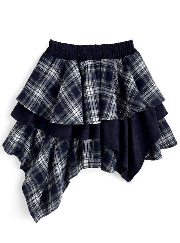 日本直送 [預購] 下擺不規則Ruffle·拼接格仔短裙 ◍ 2色入