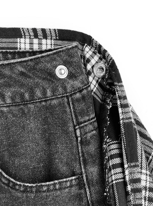 日本直送 [預購] 格仔恤布·拼接牛仔褲 (黑色 ブラック)