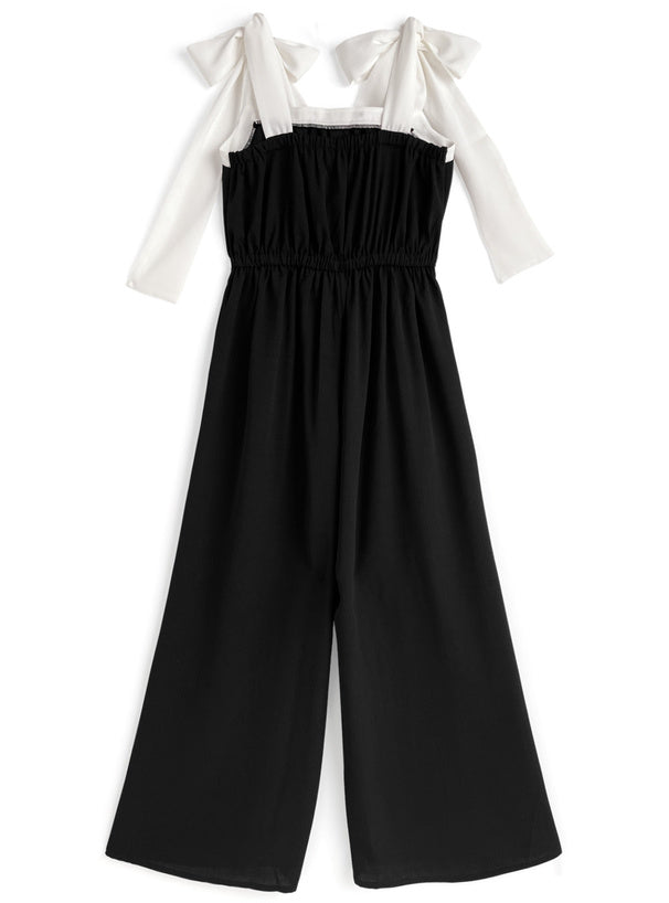 日本直送 [現貨] 黑白拼色 ౨ৎ蝴蝶肩帶連身褲 (黑 ブラック)