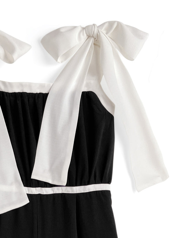 ♡黑白拼色 ౨ৎ蝴蝶肩帶連身褲