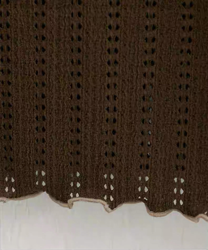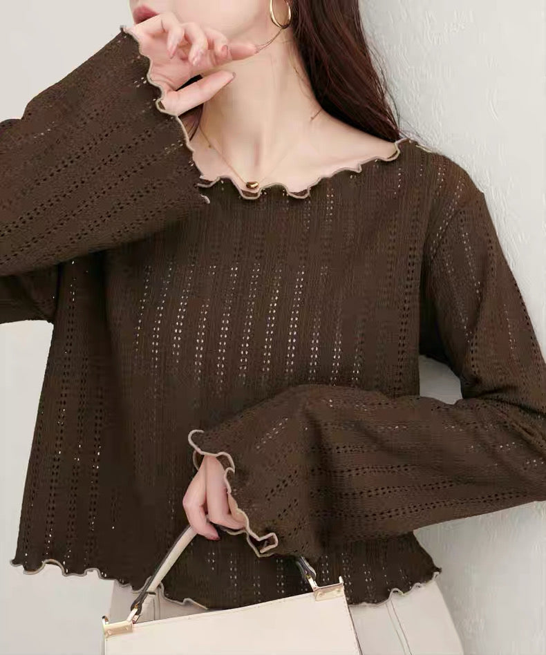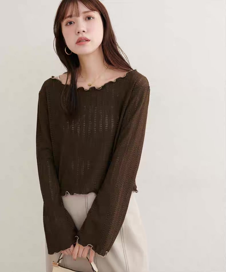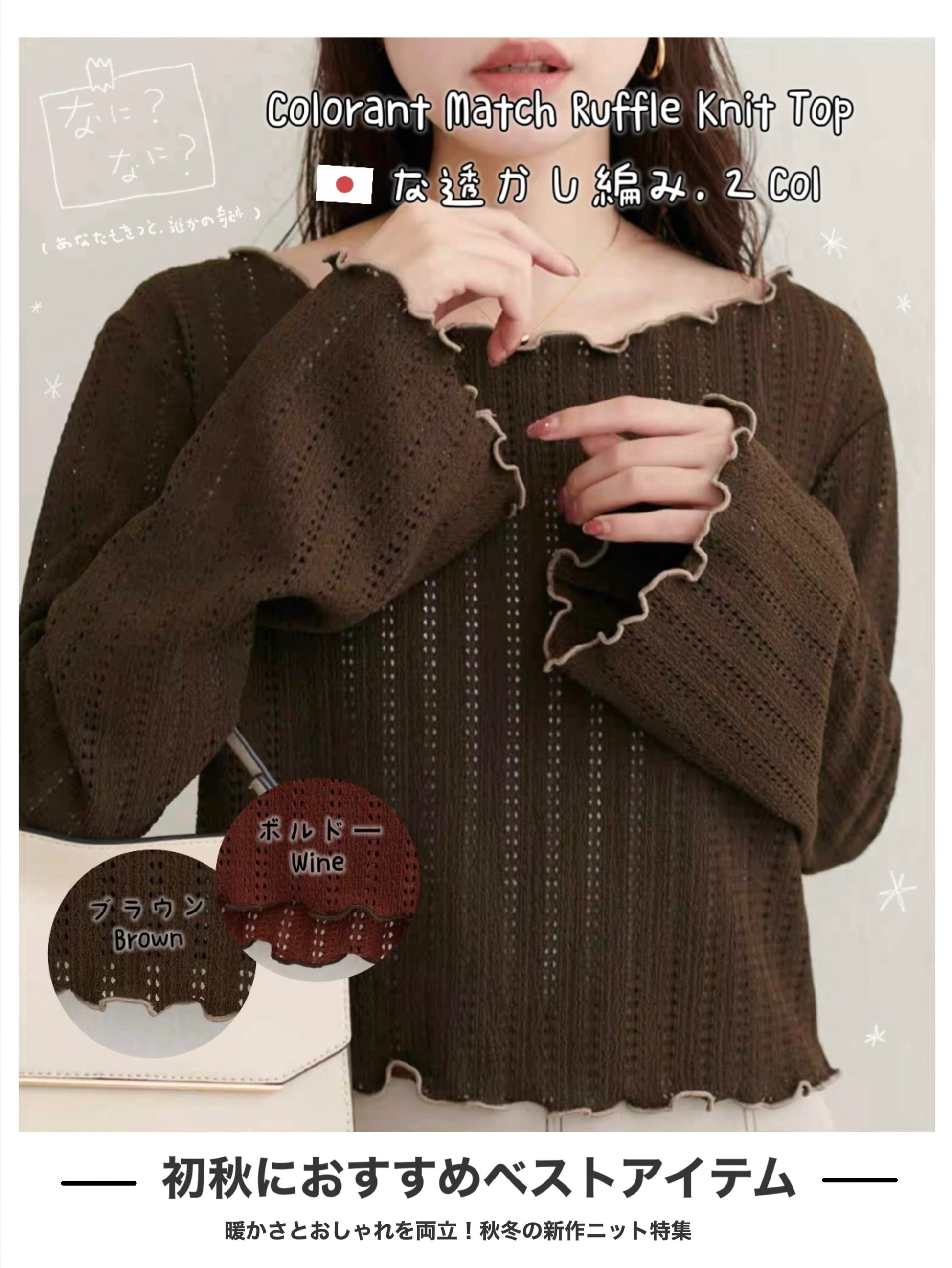 日本直送 [現貨] 拼色木耳邊·鏤空針織上衣 ◍ 2色入
