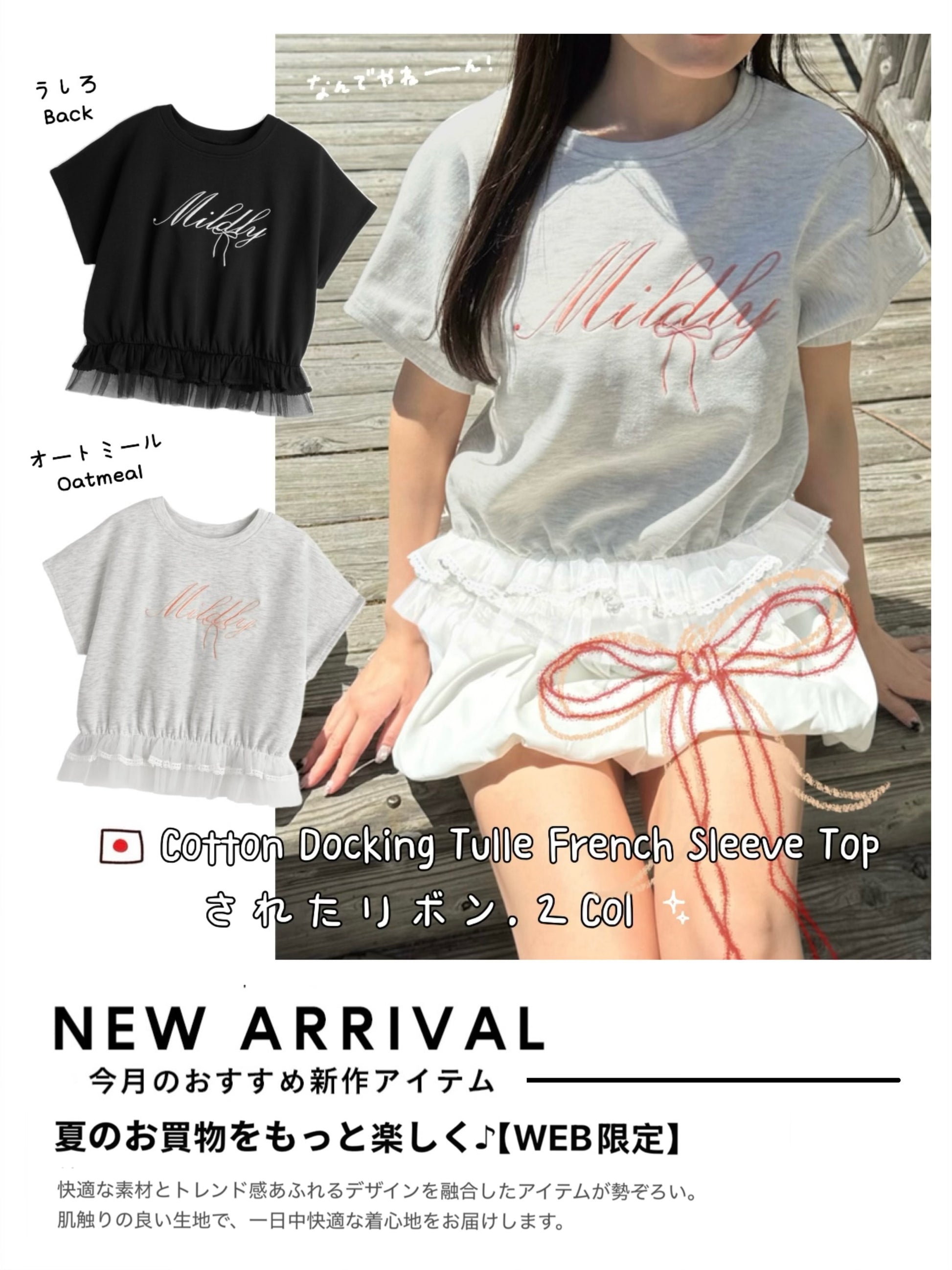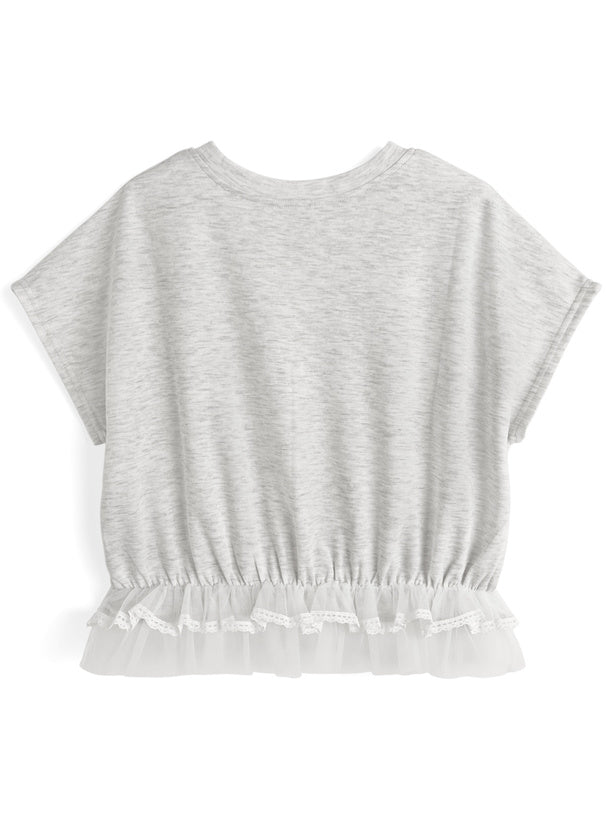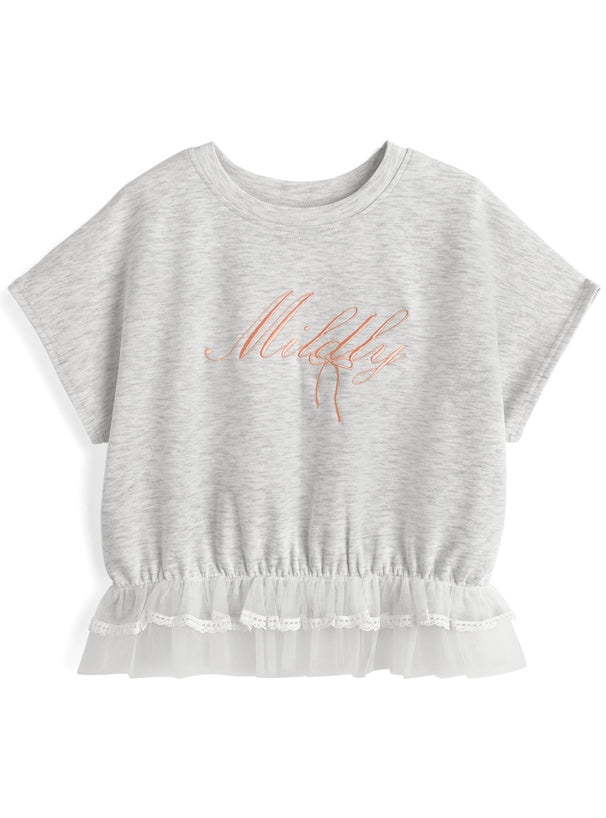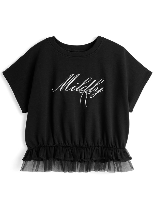 日本直送 [預購] 刺繡౨ৎ文字Logo 紗紗下擺·拼接棉料上衣 ◍ 2色入