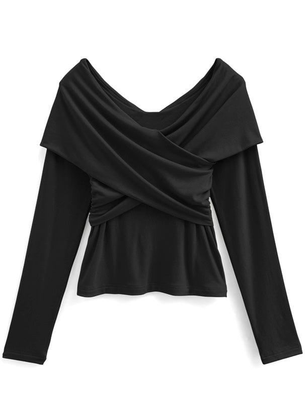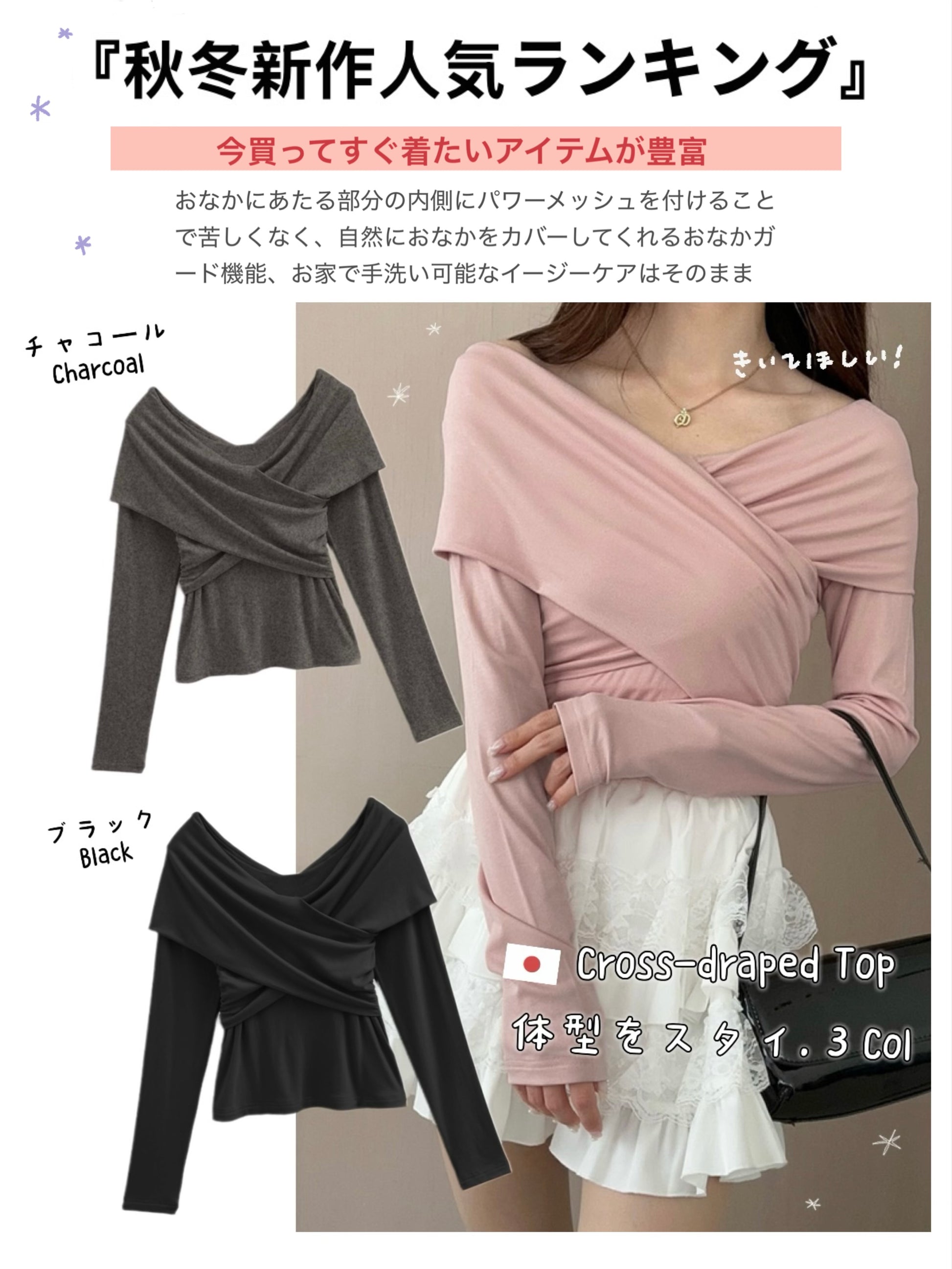日本直送 [預購] 顯瘦瘦·交叉領口針織上衣 ◍ 3色入