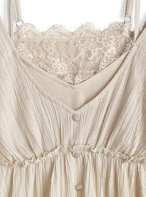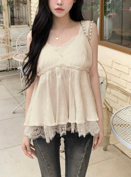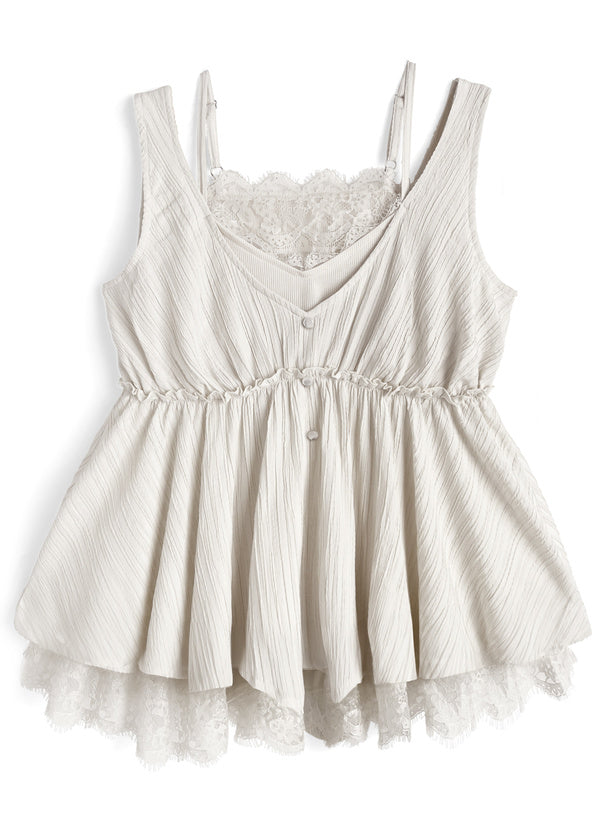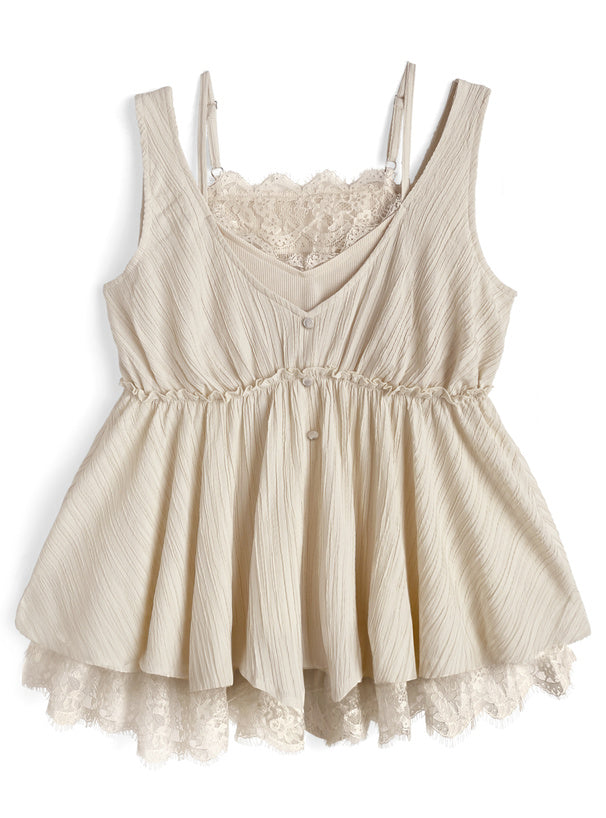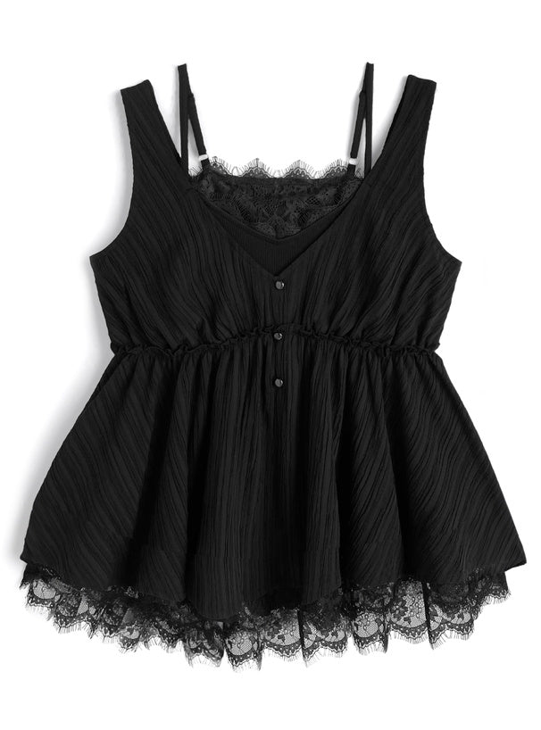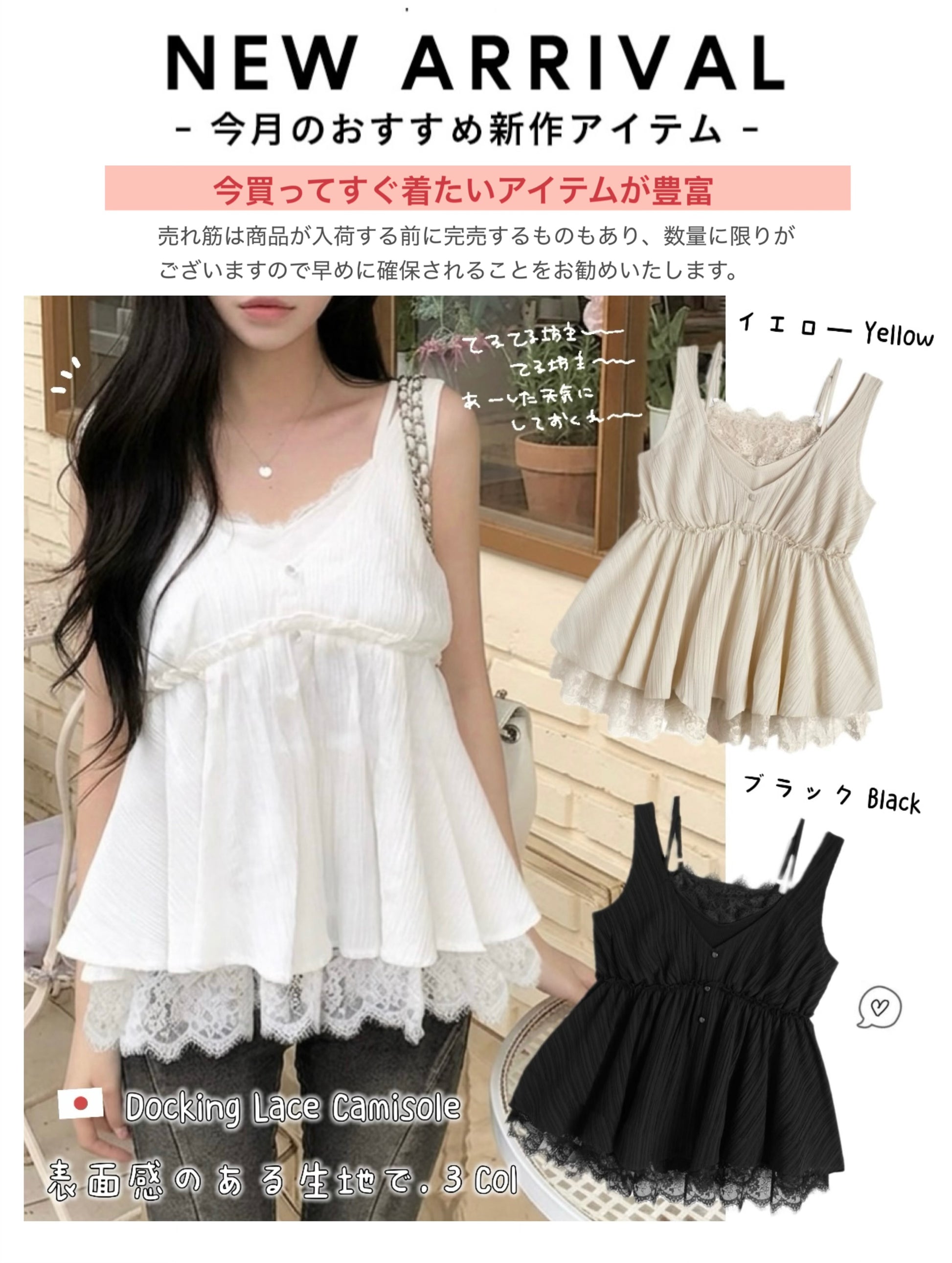 日本直送 [預購] 拼接蕾絲屬次感背心 ◍ 3色入