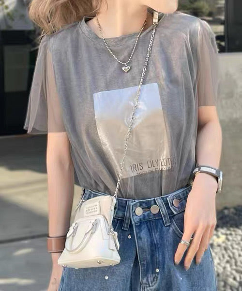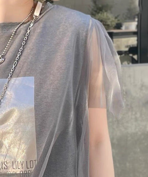 日本直送 [現貨] 扮2件·紗紗拼接棉料上衣 (灰 グレー)