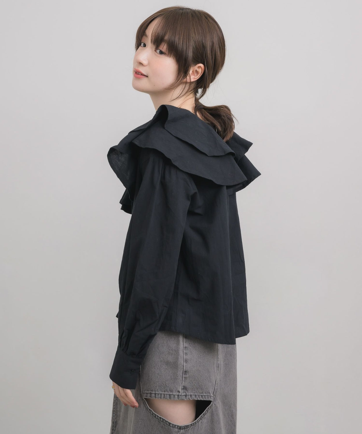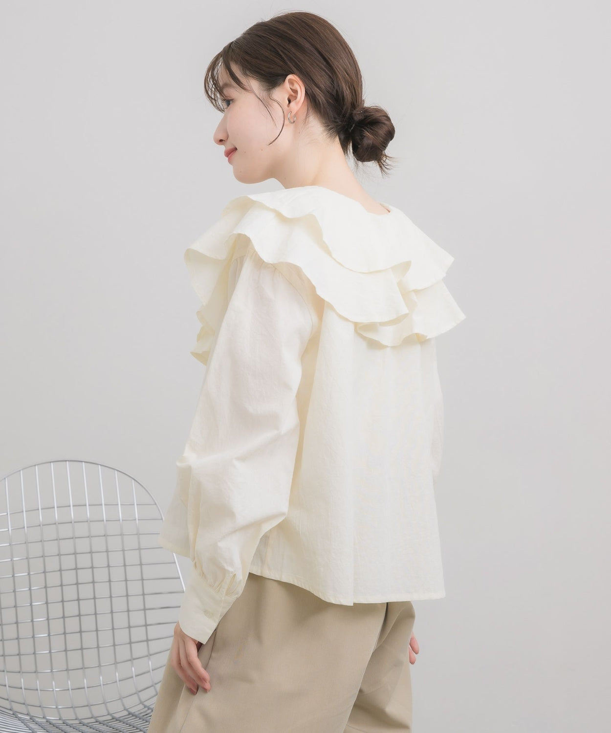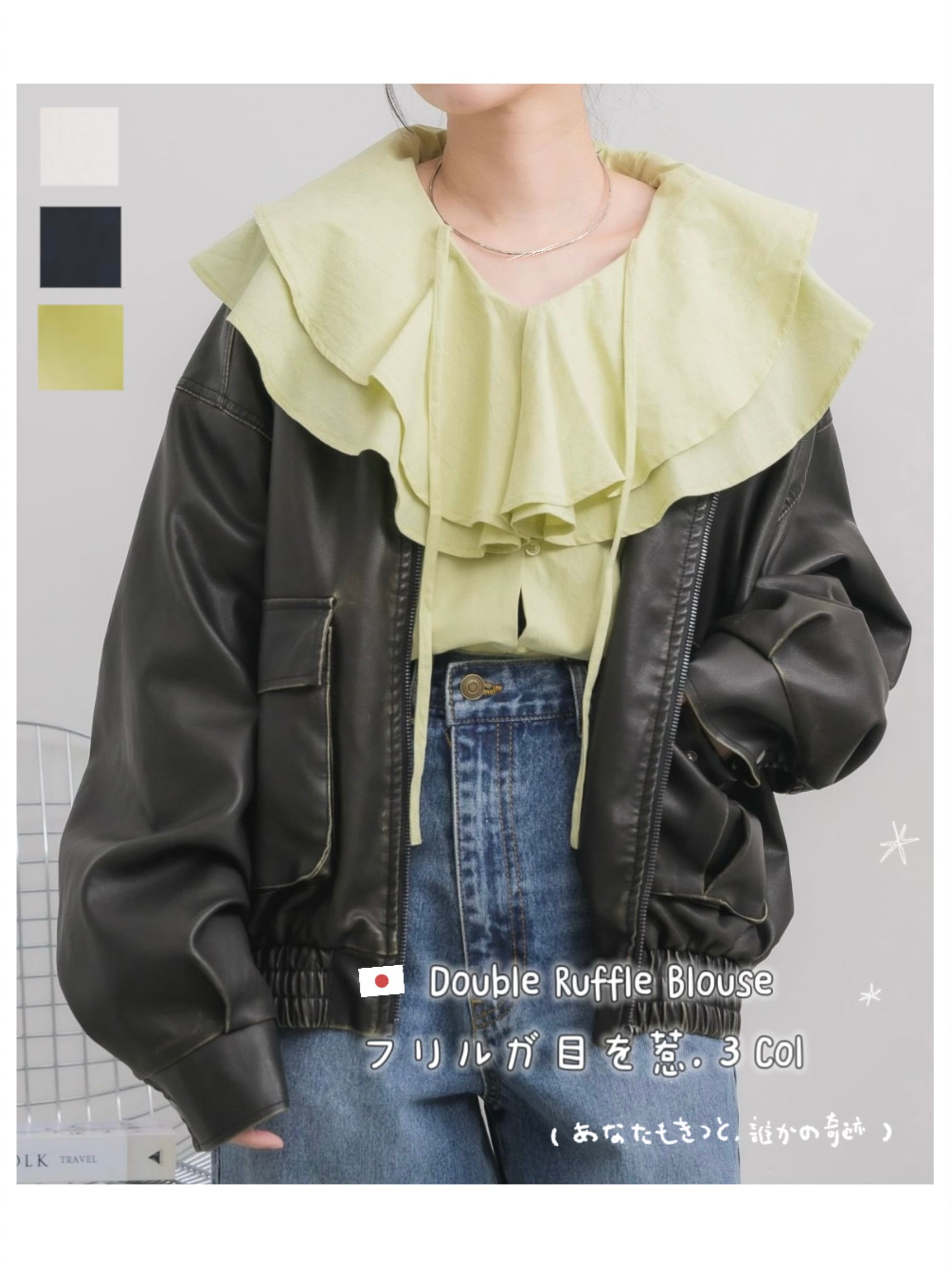 日本直送 [預購] 層次Ruffle領口౨ৎ棉料上衣 ◍ 3色入