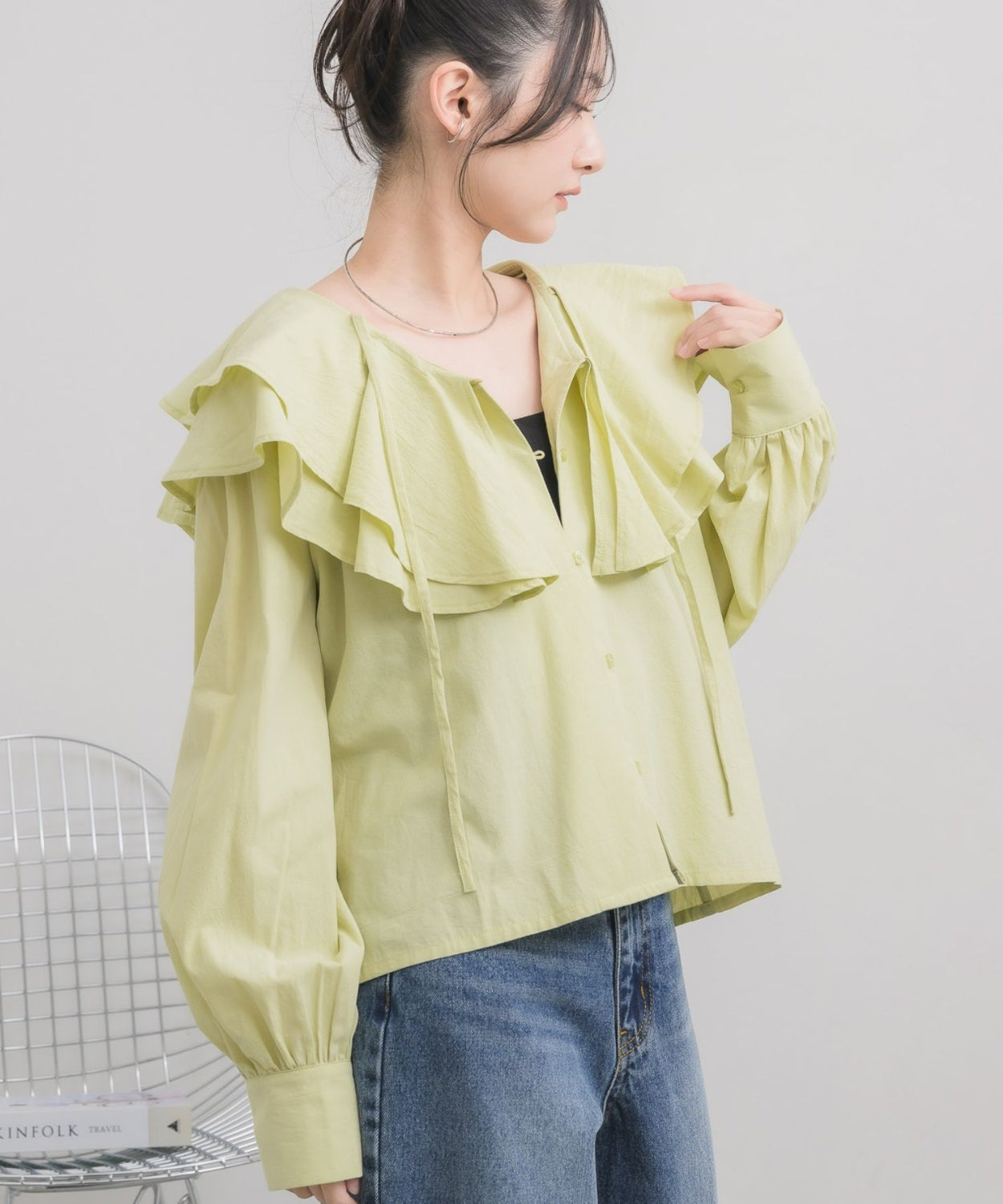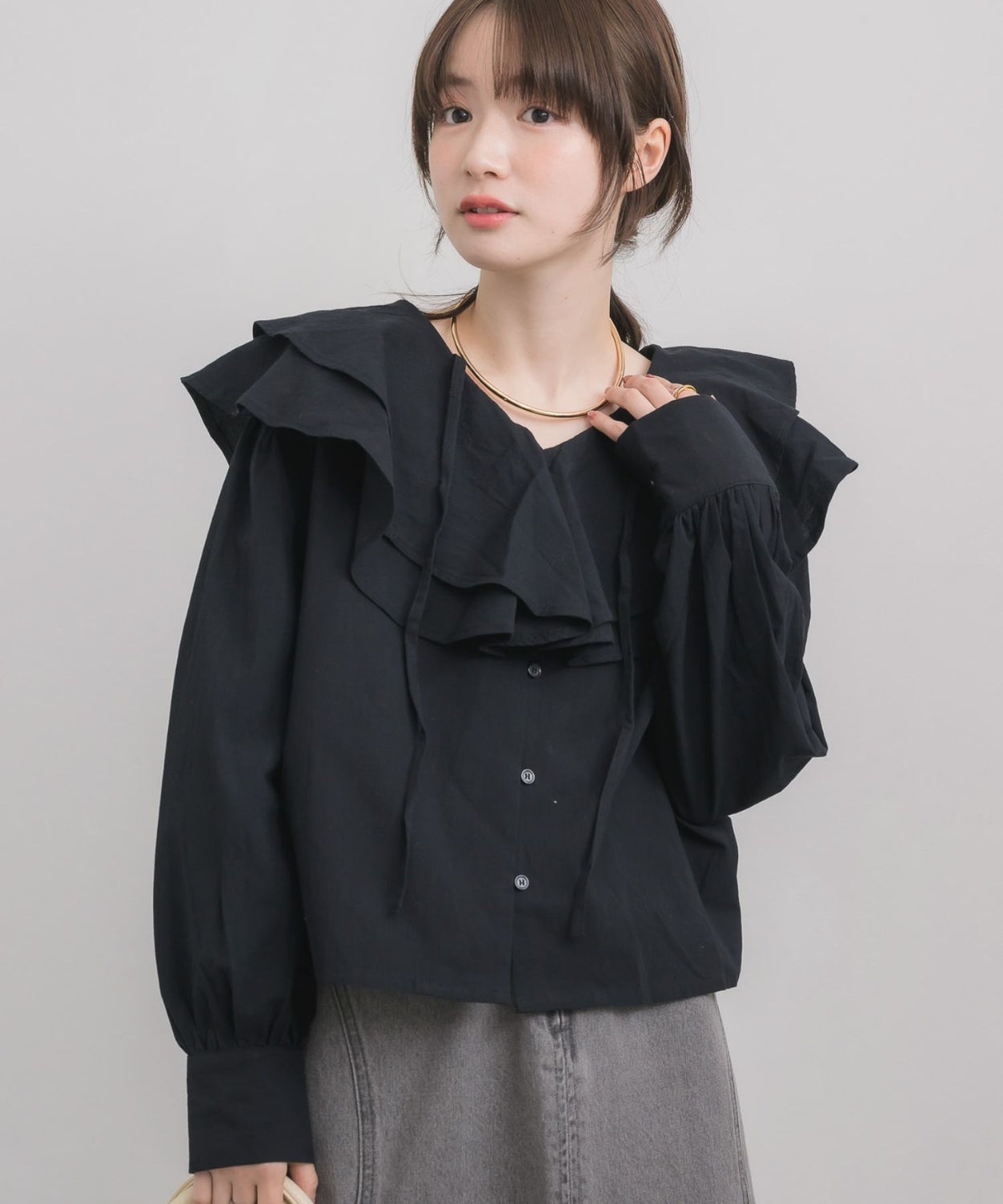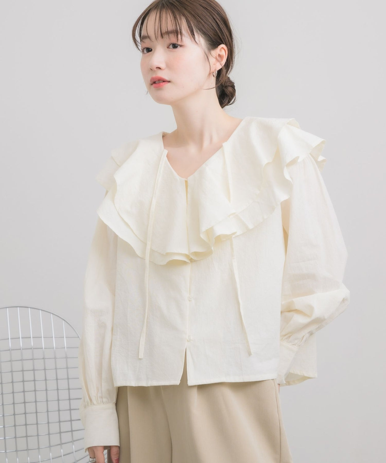 日本直送 [預購] 層次Ruffle領口౨ৎ棉料上衣 ◍ 3色入