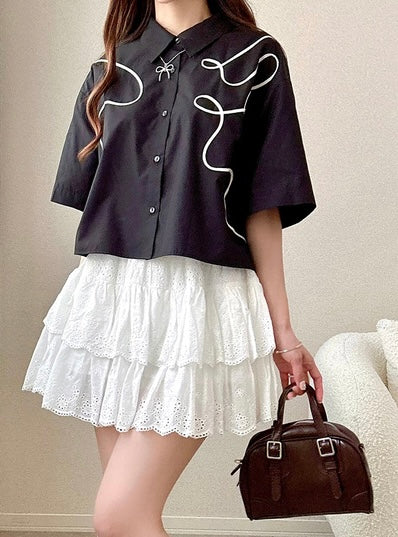♡刺繡線條·帶領恤衫