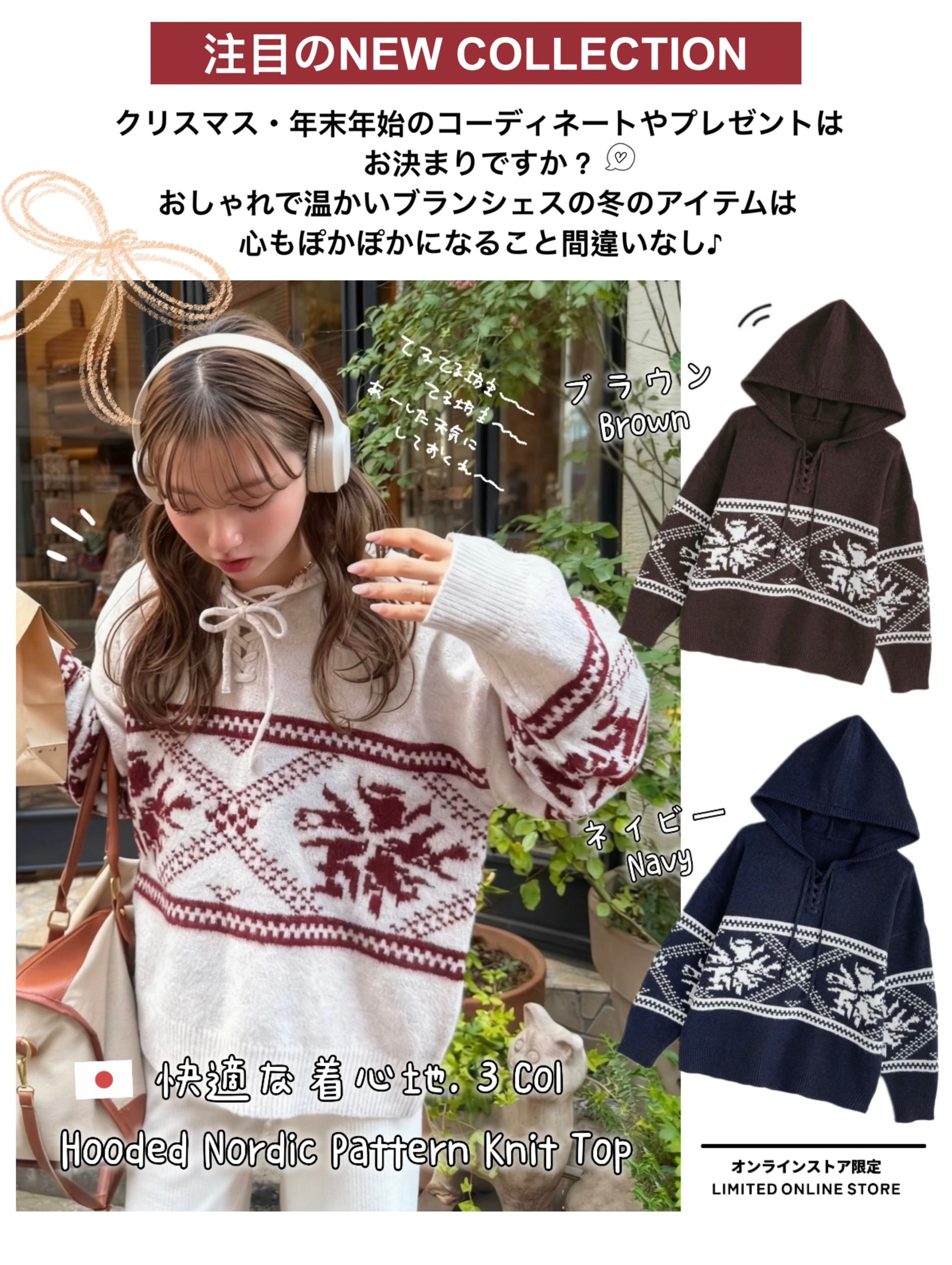 日本直送 [預購] 帶帽·民旅pattern針織上衣 ◍ 3色入