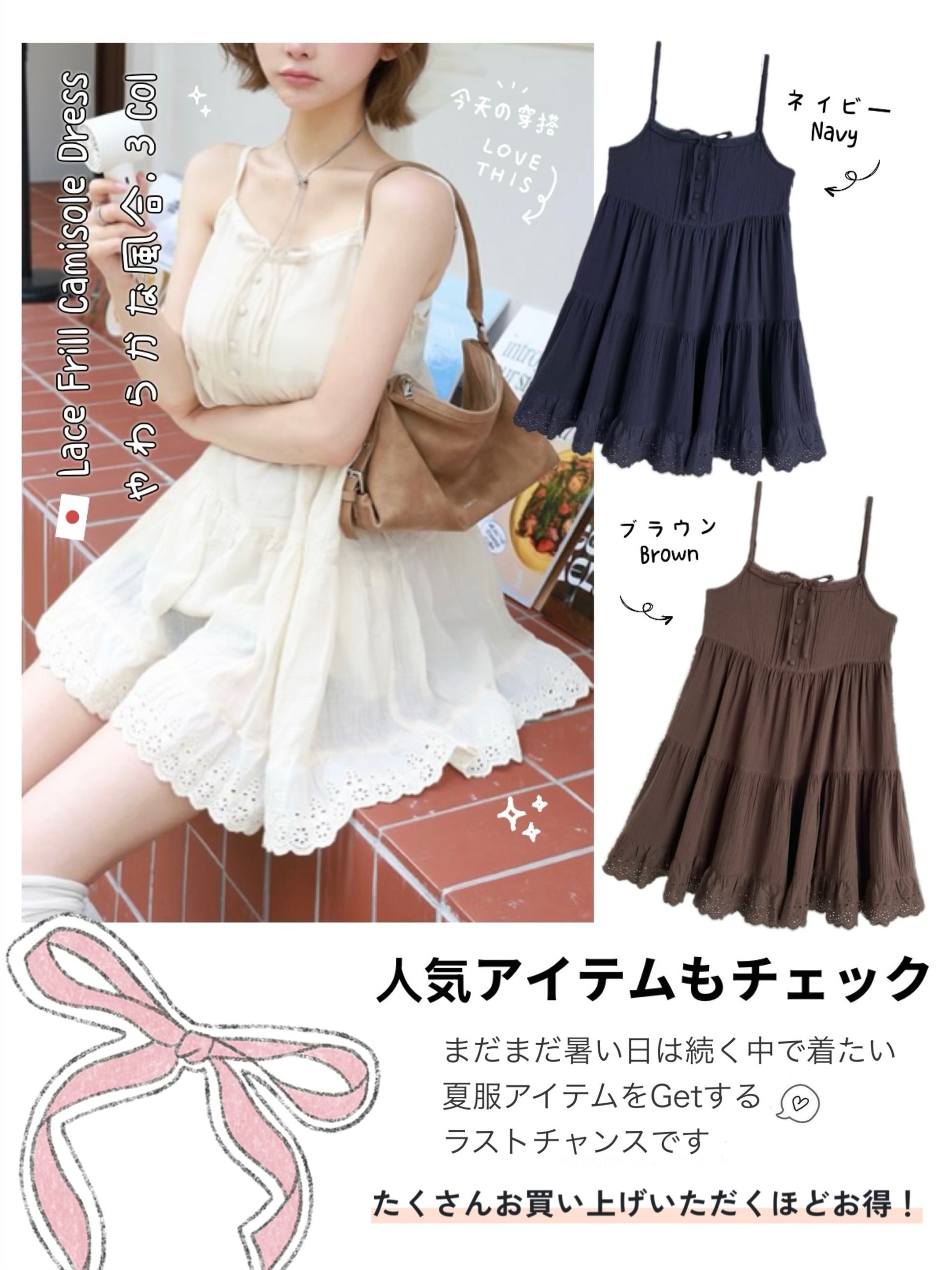 日本直送 [預購] Ruffle通花下擺౨ৎ 吊帶裙 ◍ 3色入