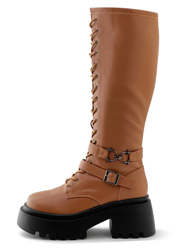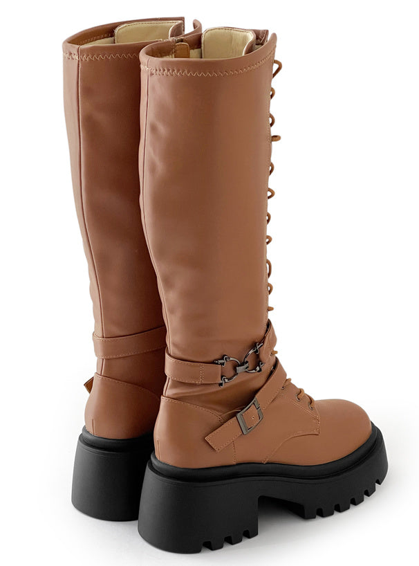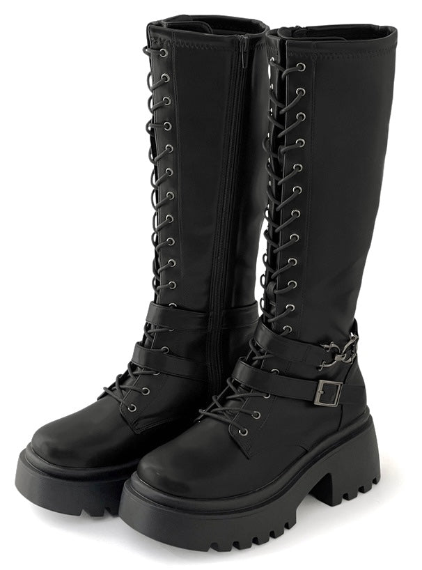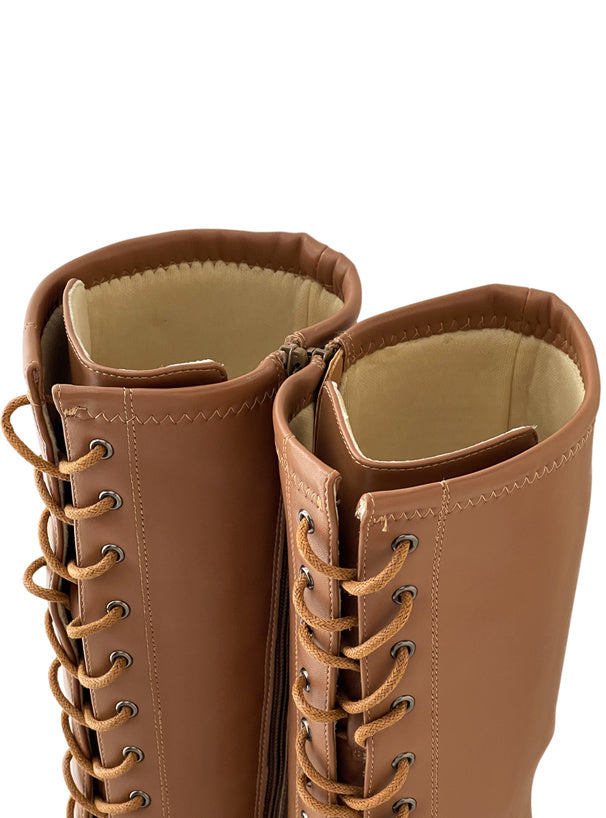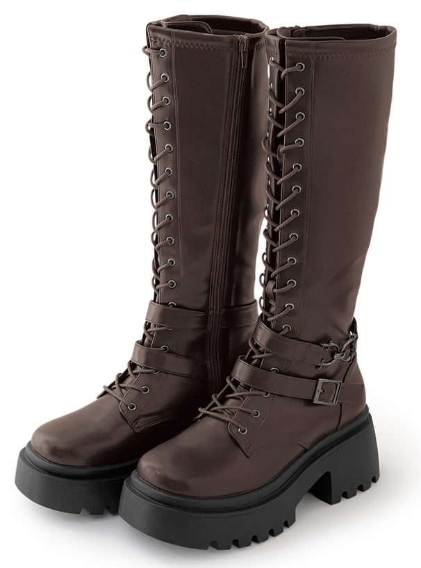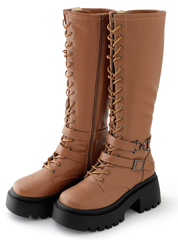 日本直送 [預購] 綁繩·8 CM厚底PU皮長靴 ◍ 3 色入