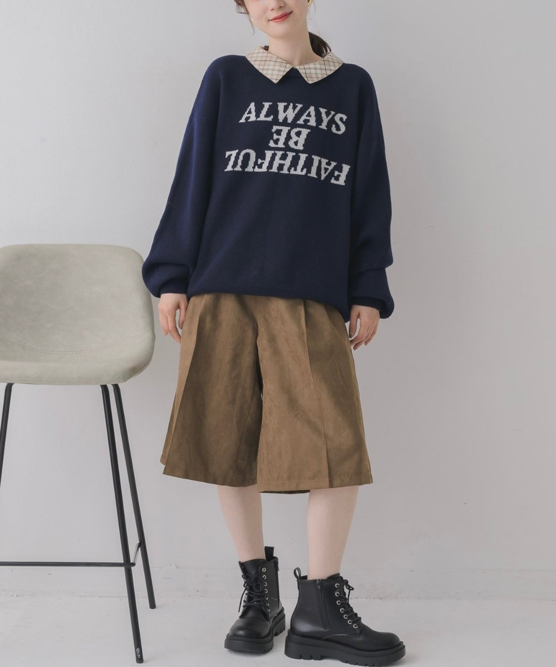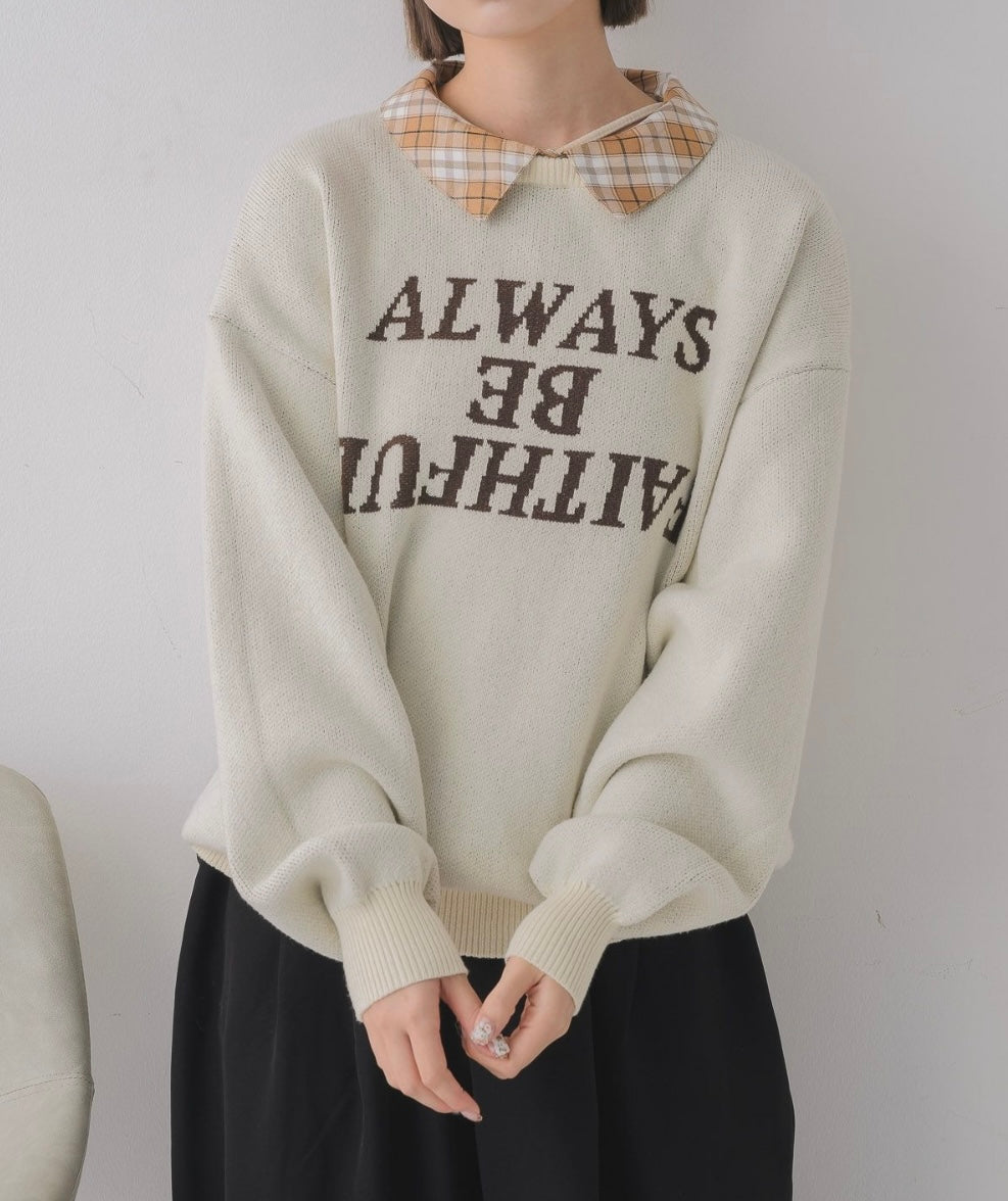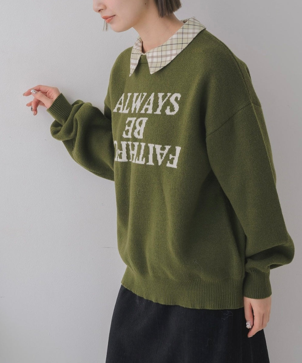 日本直送 [預購] 扮2件·格仔恤領拼針織毛衣 ◍ 3色入