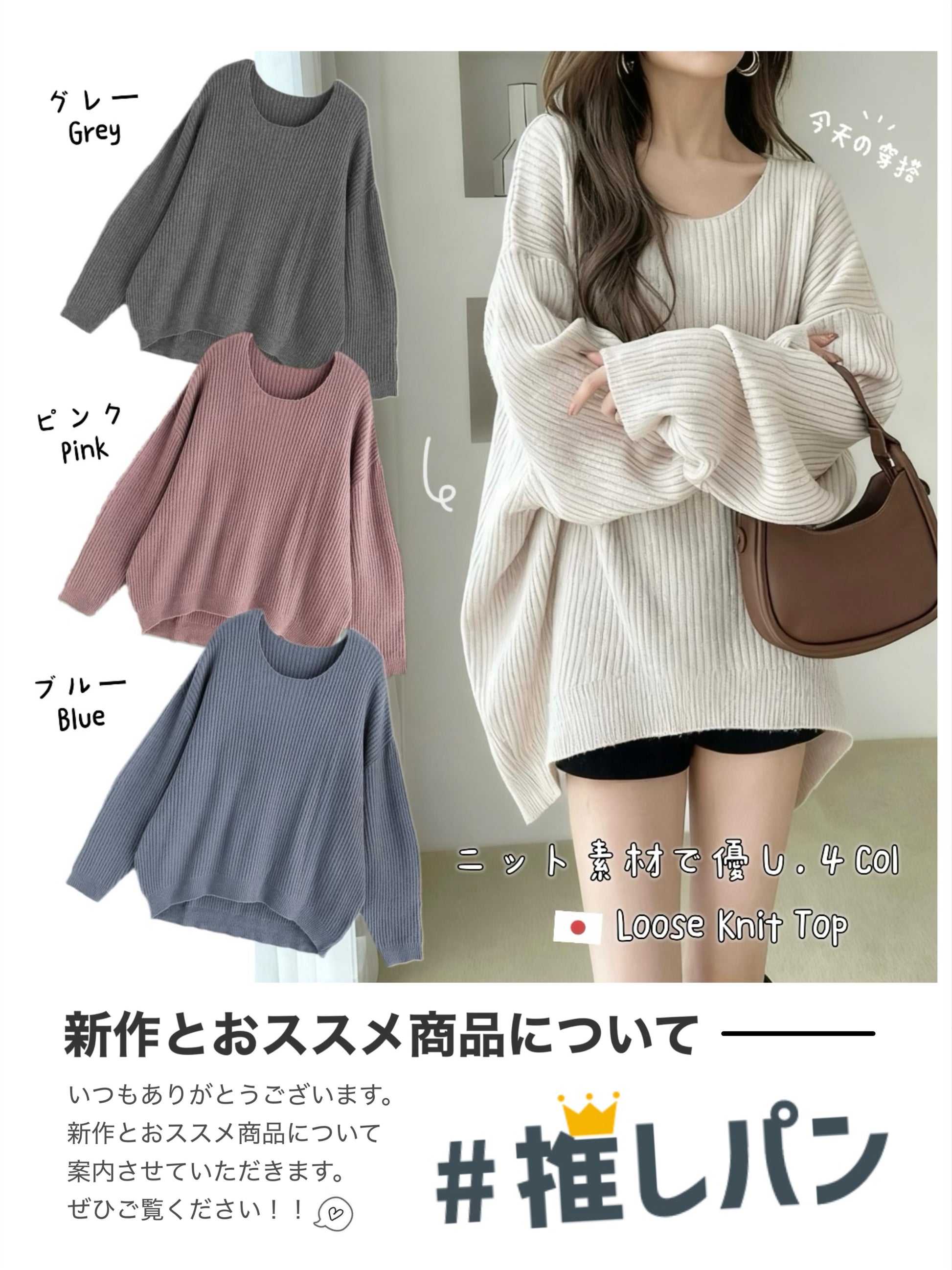 日本直送 [預購] 前短後長·圓領軟糯針織上衣 ◍ 4色入