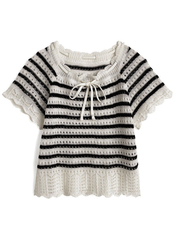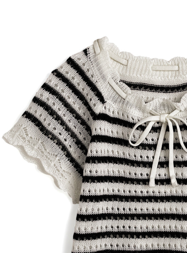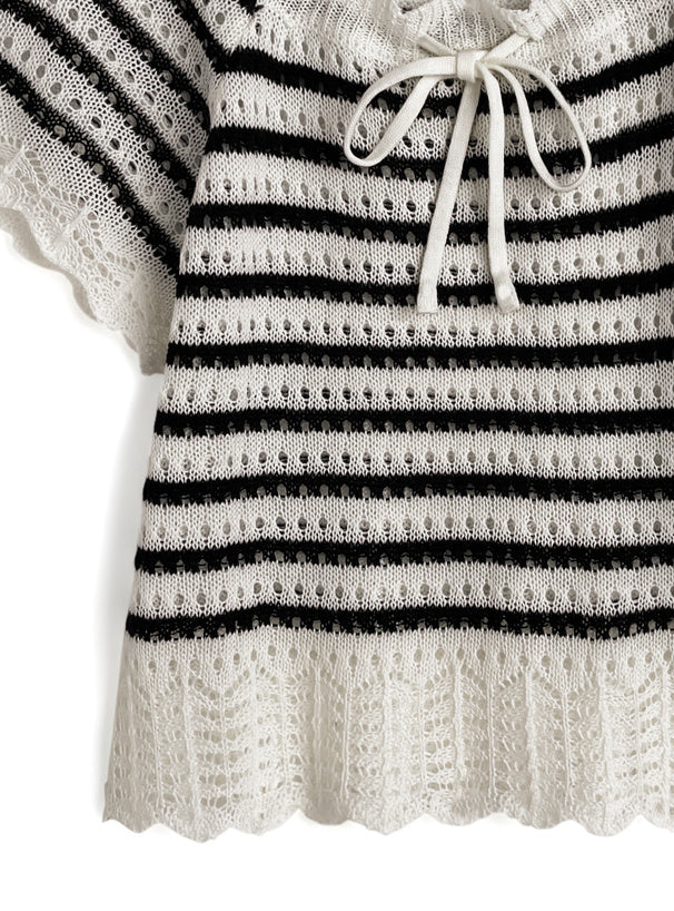 ♡間條鏤空針織配蝴蝶౨ৎ 上衣