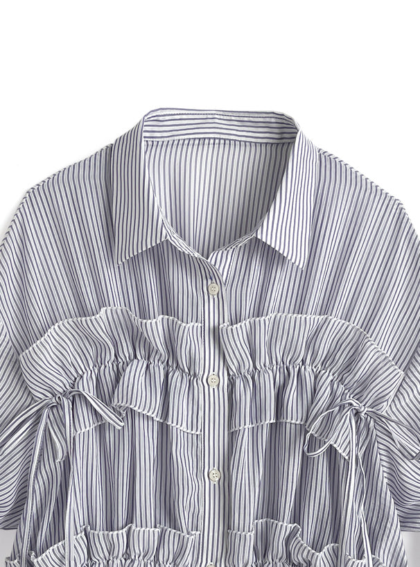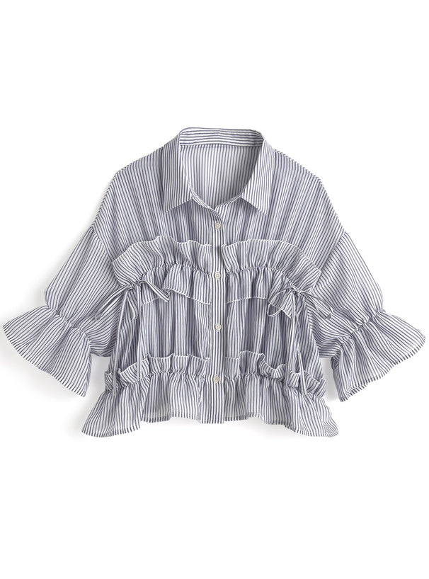 ♡輕·透·間條皺褶౨ৎ上衣