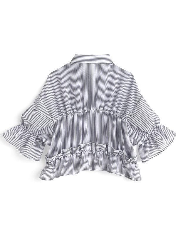 日本直送 [預購] 輕·透·間條皺褶౨ৎ上衣 (深藍)