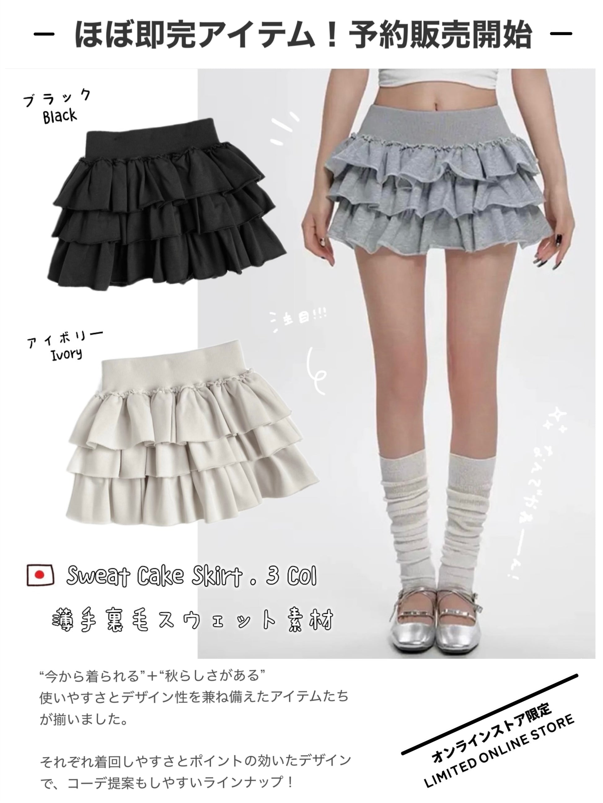 日本直送 [預購] 薄衛衣料·蛋糕短裙 ◍ 3色入
