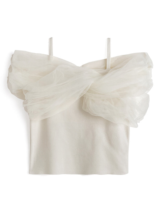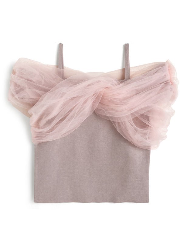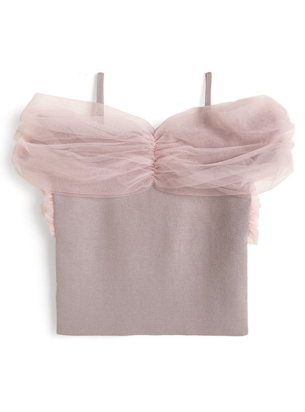 日本直送 [預購] 紗紗拼接針織·露肩上衣 ◍ 4色入