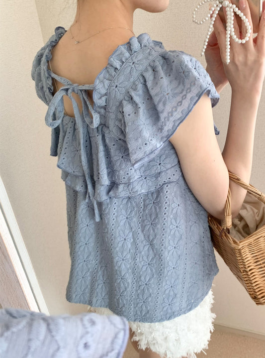 日本直送 [預購 - 日本7月下旬發貨] 花花壓花·Ruffle邊上衣 ◍ 2色入