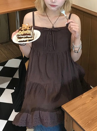 日本直送 [預購] Ruffle通花下擺౨ৎ碎花吊帶裙 (啡 ブラウン)