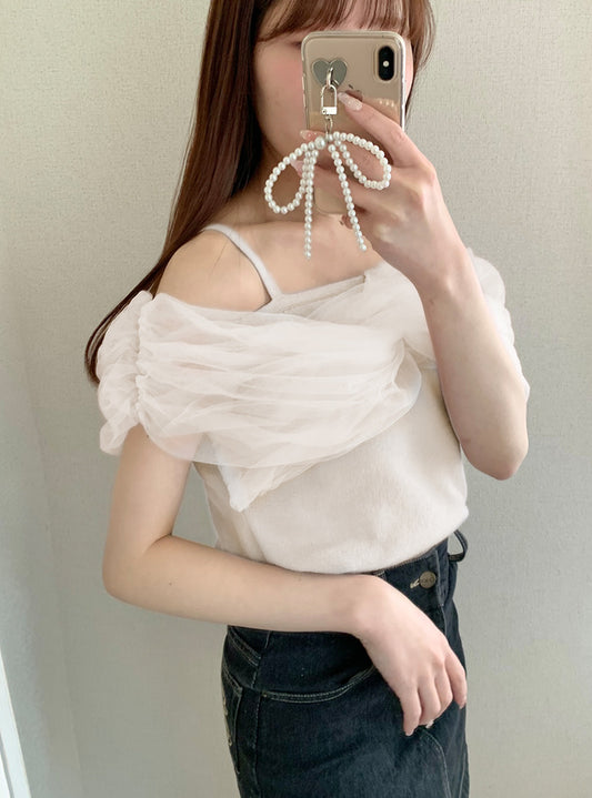 日本直送 [預購] 紗紗拼接針織·露肩上衣 ◍ 4色入
