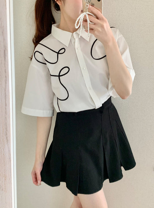 日本直送 [預購] 刺繡線條·帶領恤衫 ◍ 2色入