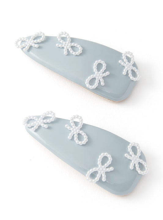 日本直送 [預購] 珍珠蝴蝶結౨ৎ 皮革髮夾◍ 4色入