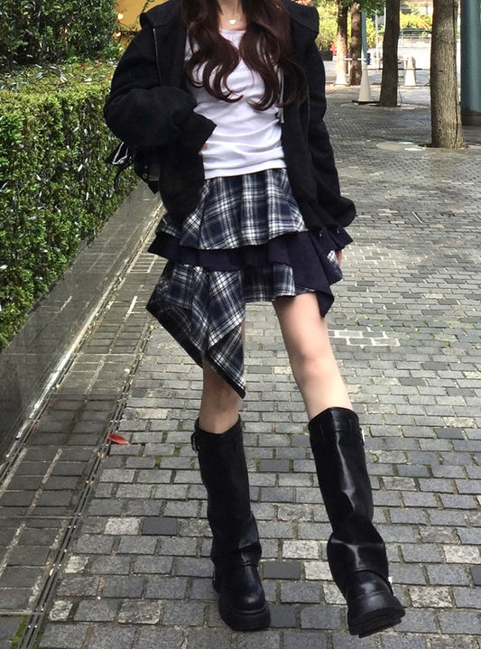 日本直送 [預購] 下擺不規則Ruffle·拼接格仔短裙 ◍ 2色入