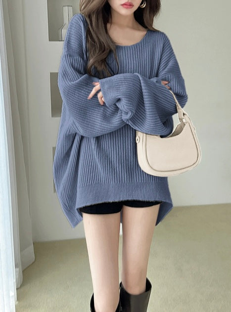 日本直送 [預購] 前短後長·圓領軟糯針織上衣 ◍ 4色入