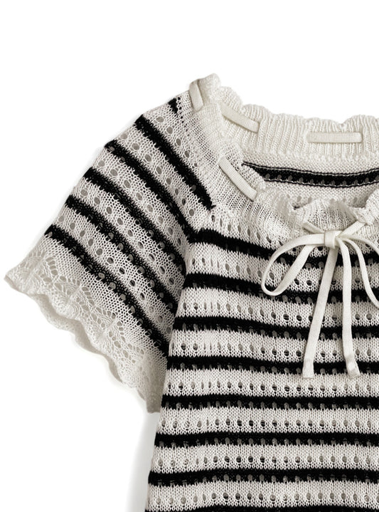 日本直送 [預購] 間條鏤空針織配蝴蝶౨ৎ 上衣