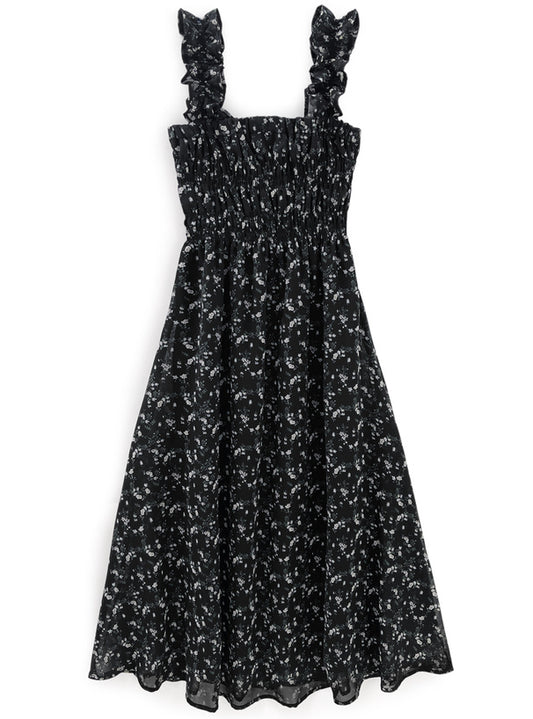 日本直送 [預購] 輕盈雪紡·碎花吊帶裙 (黑 ブラック)